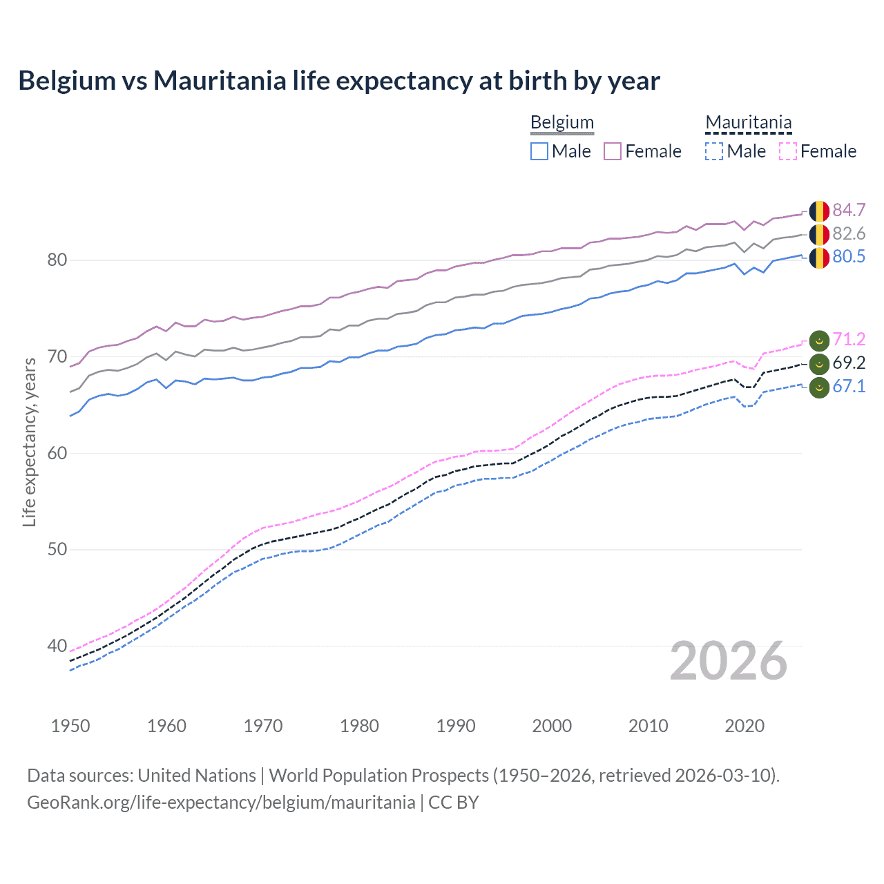 GeoRank.org/life-expectancy/belgium/mauritania | CC BY