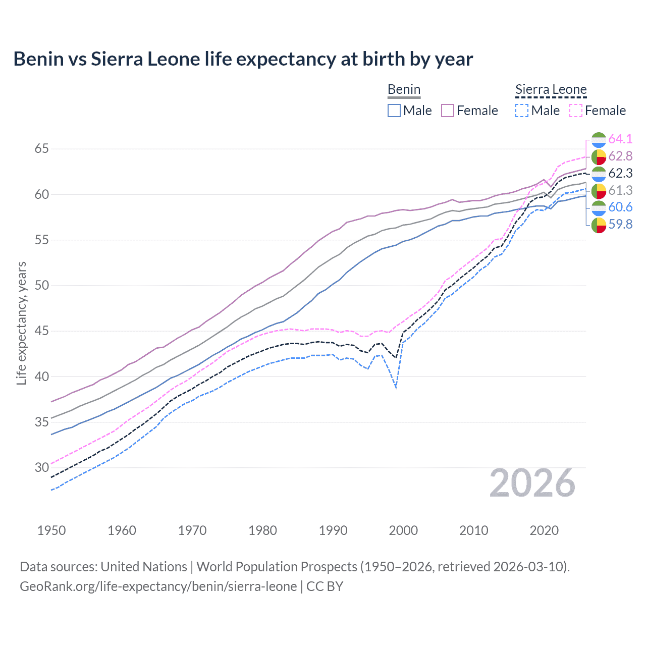 GeoRank.org/life-expectancy/benin/sierra-leone | CC BY