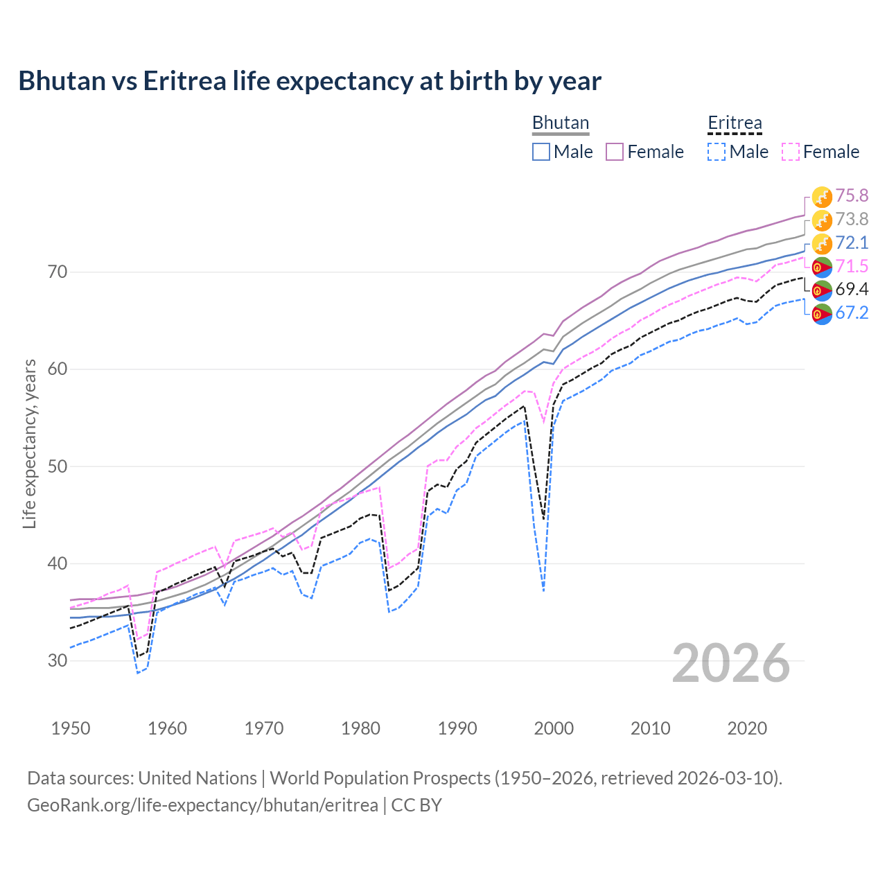 GeoRank.org/life-expectancy/bhutan/eritrea | CC BY