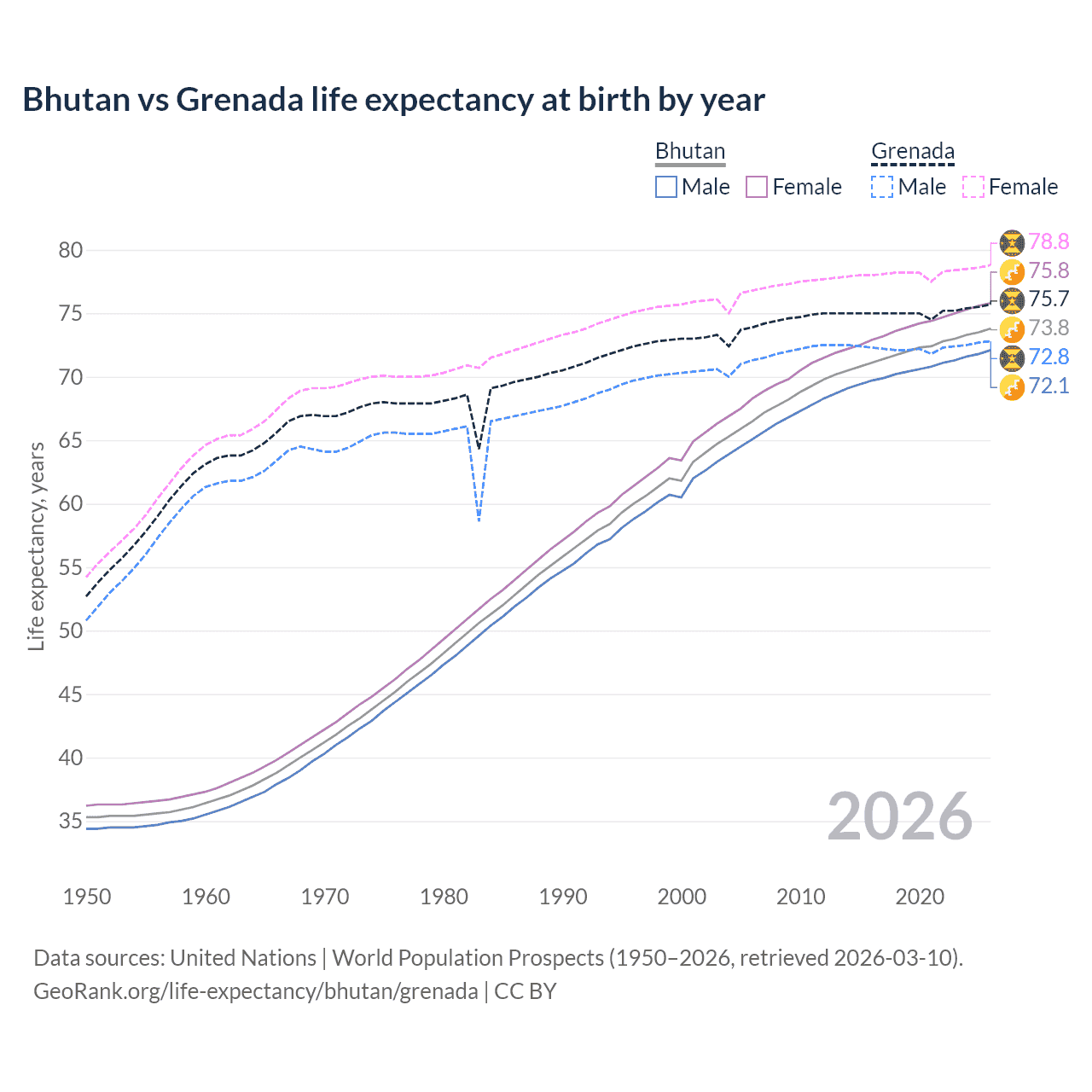 GeoRank.org/life-expectancy/bhutan/grenada | CC BY