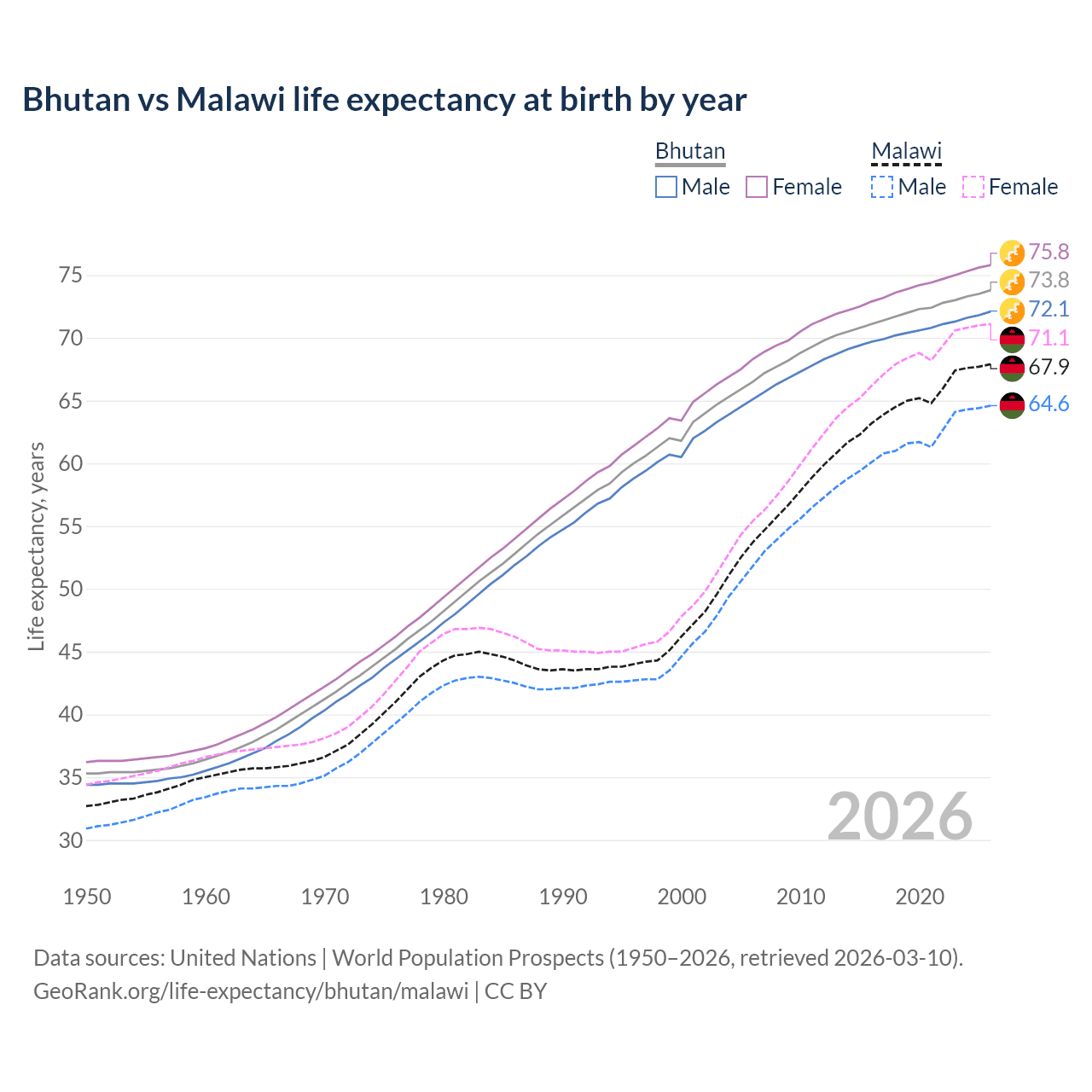 GeoRank.org/life-expectancy/bhutan/malawi | CC BY