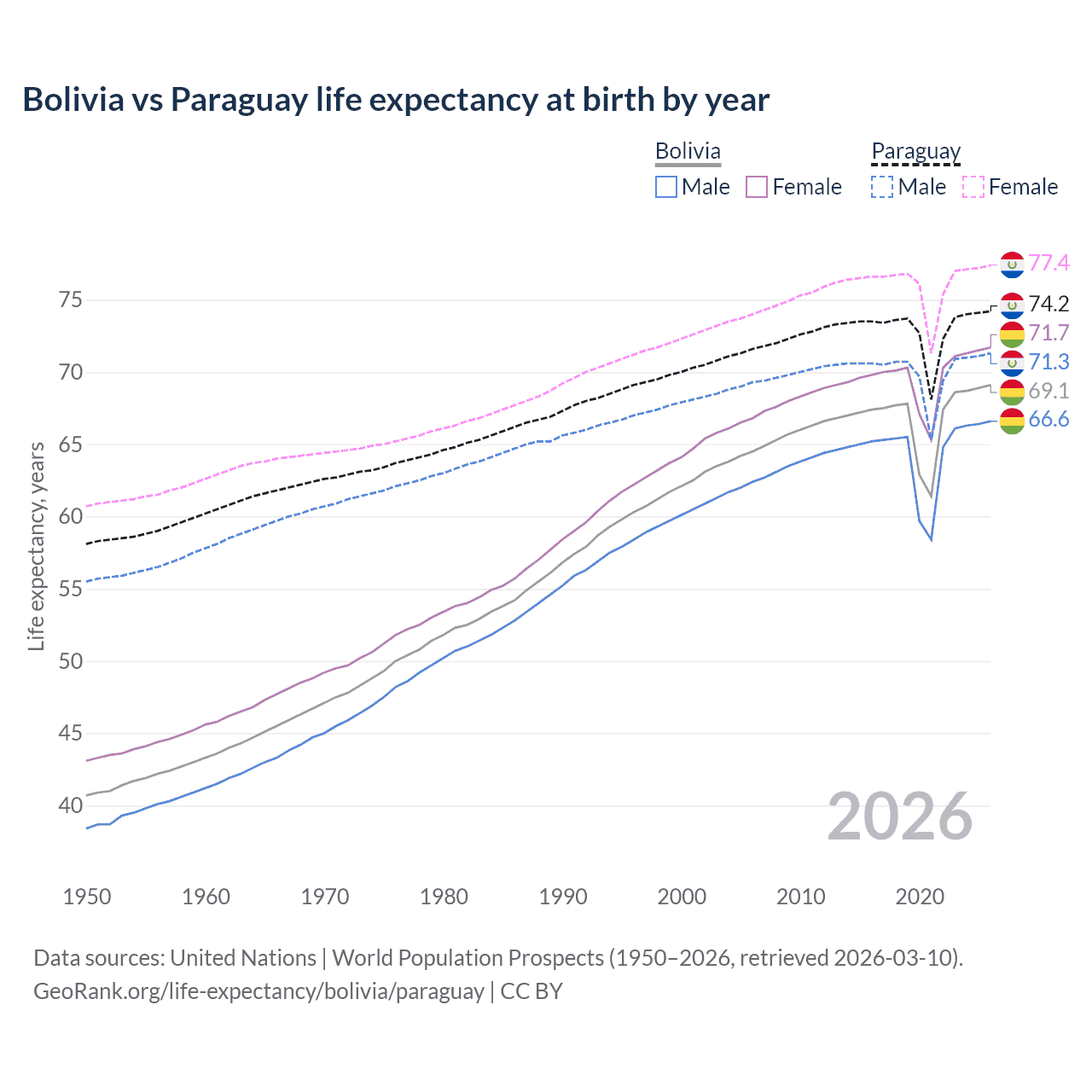 GeoRank.org/life-expectancy/bolivia/paraguay | CC BY