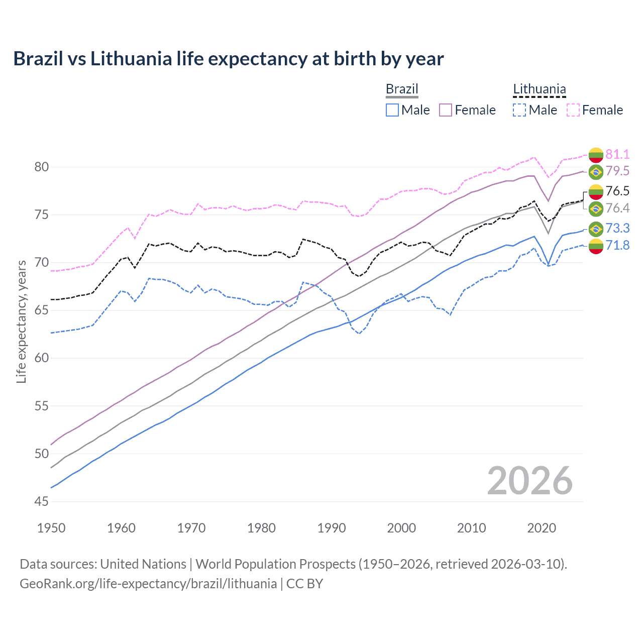 GeoRank.org/life-expectancy/brazil/lithuania | CC BY