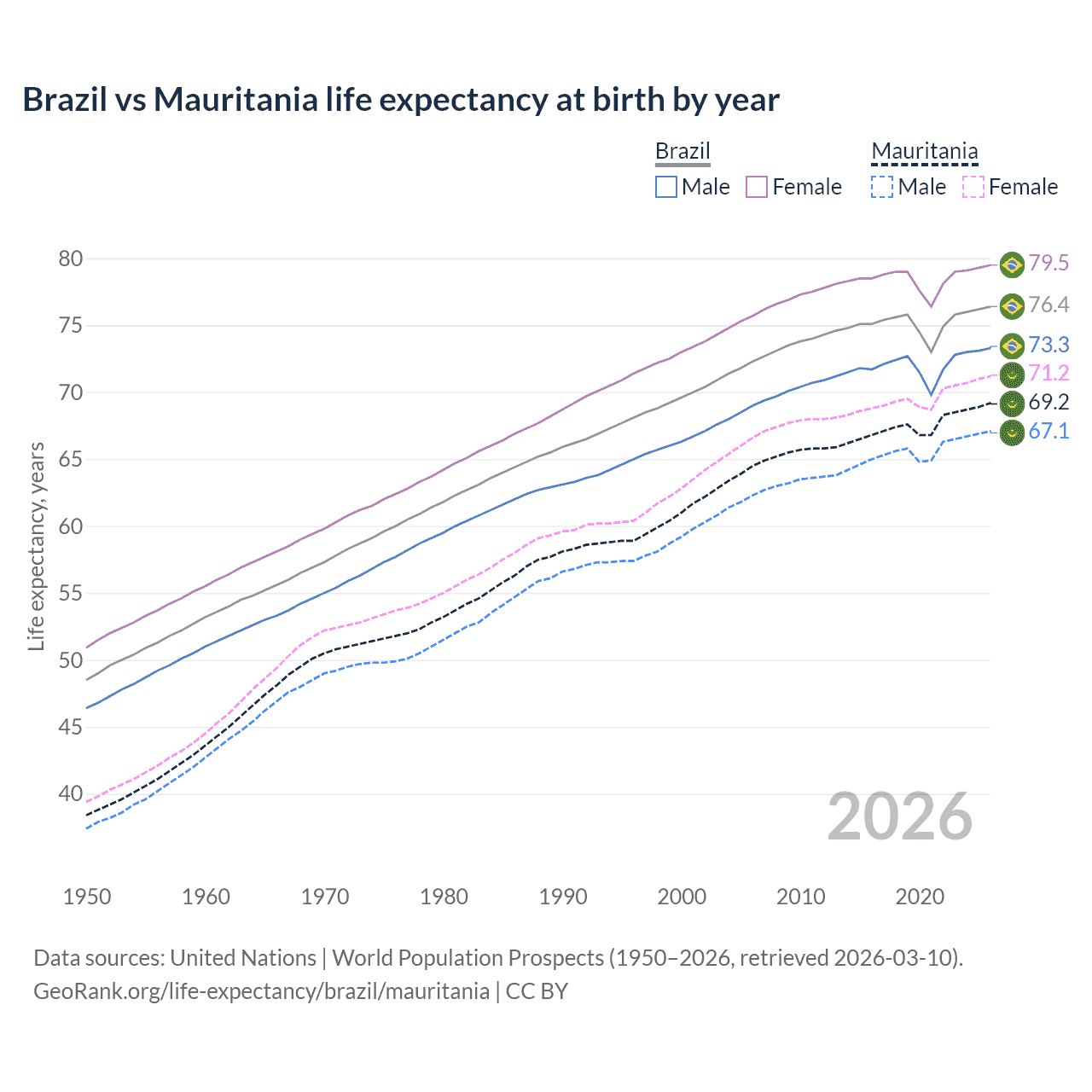 GeoRank.org/life-expectancy/brazil/mauritania | CC BY