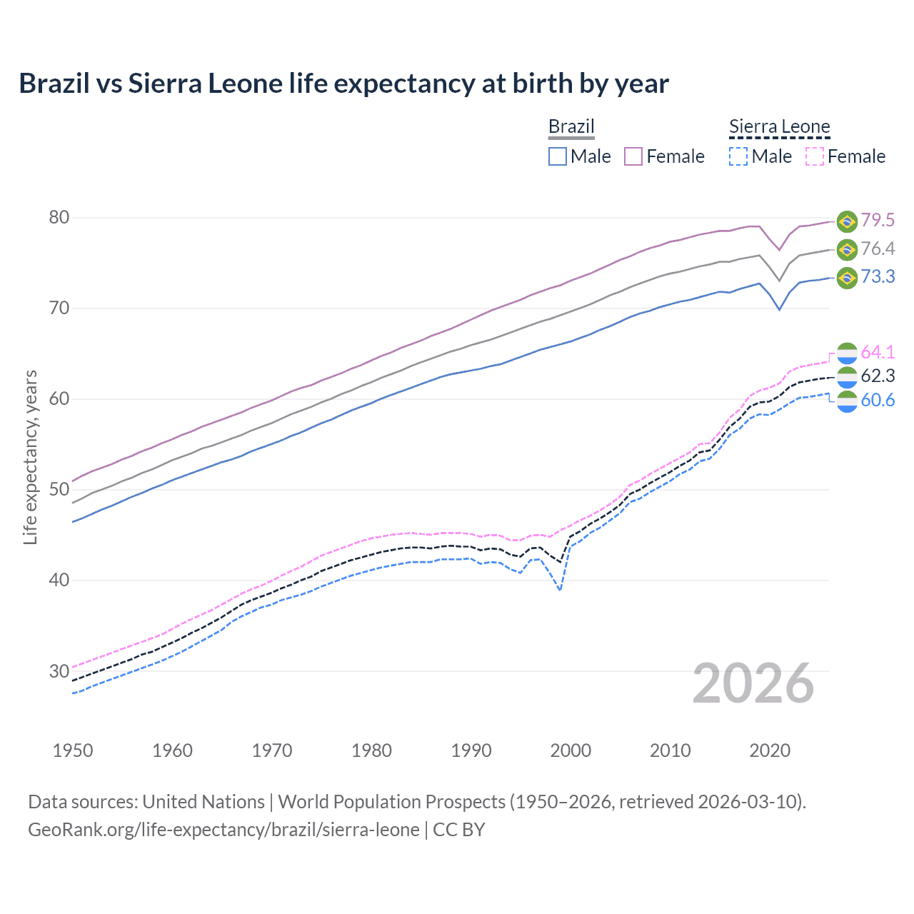 GeoRank.org/life-expectancy/brazil/sierra-leone | CC BY
