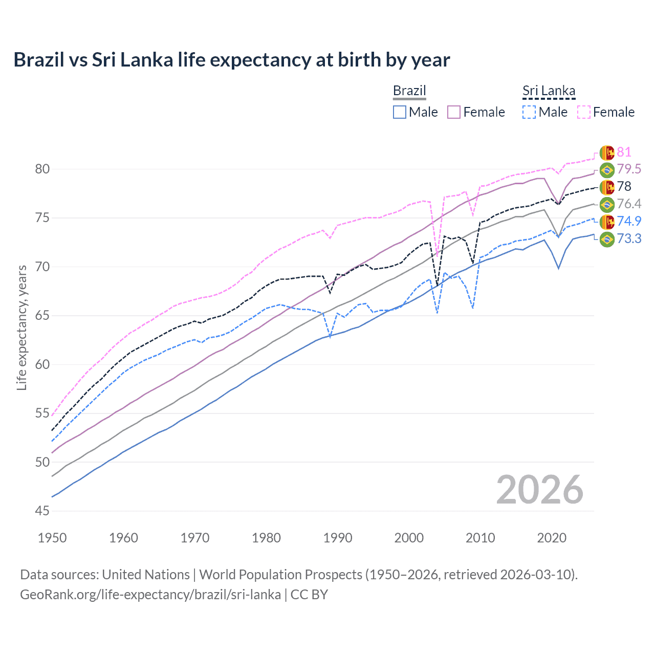 GeoRank.org/life-expectancy/brazil/sri-lanka | CC BY