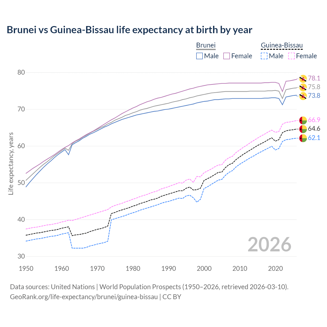 GeoRank.org/life-expectancy/brunei/guinea-bissau | CC BY