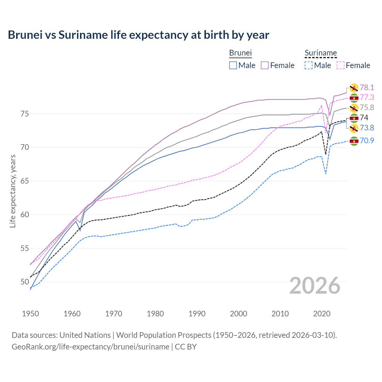 GeoRank.org/life-expectancy/brunei/suriname | CC BY