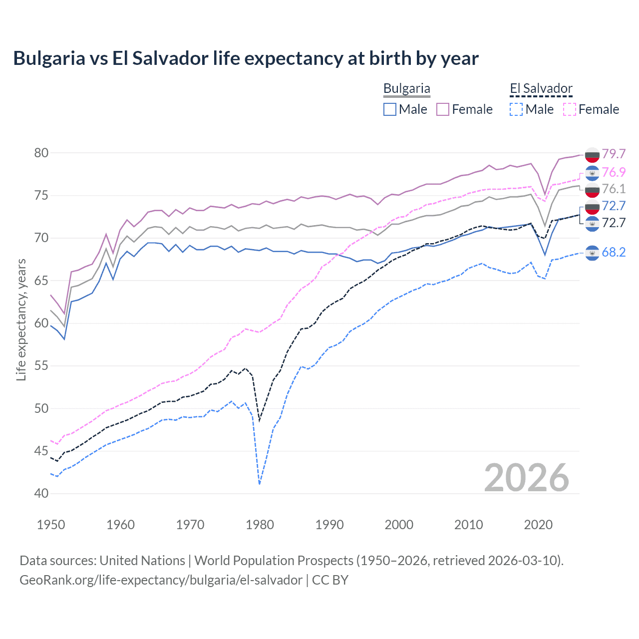 GeoRank.org/life-expectancy/bulgaria/el-salvador | CC BY