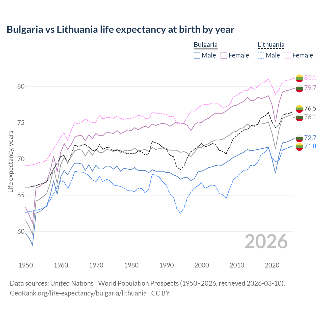 GeoRank.org/life-expectancy/bulgaria/lithuania | CC BY