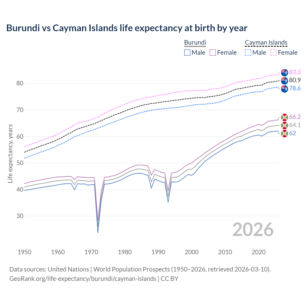 GeoRank.org/life-expectancy/burundi/cayman-islands | CC BY