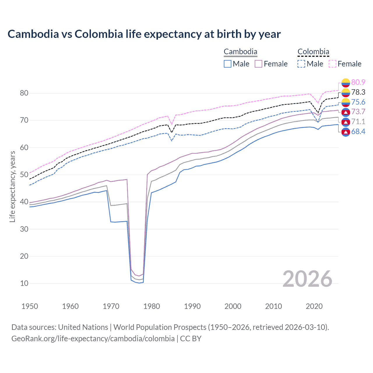 GeoRank.org/life-expectancy/cambodia/colombia | CC BY