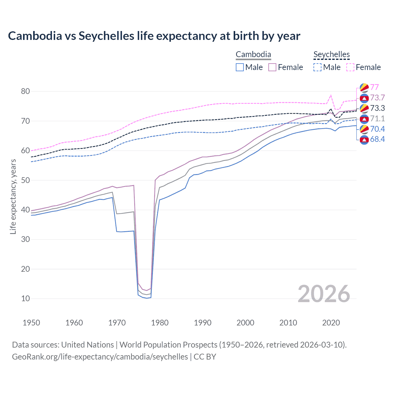 GeoRank.org/life-expectancy/cambodia/seychelles | CC BY