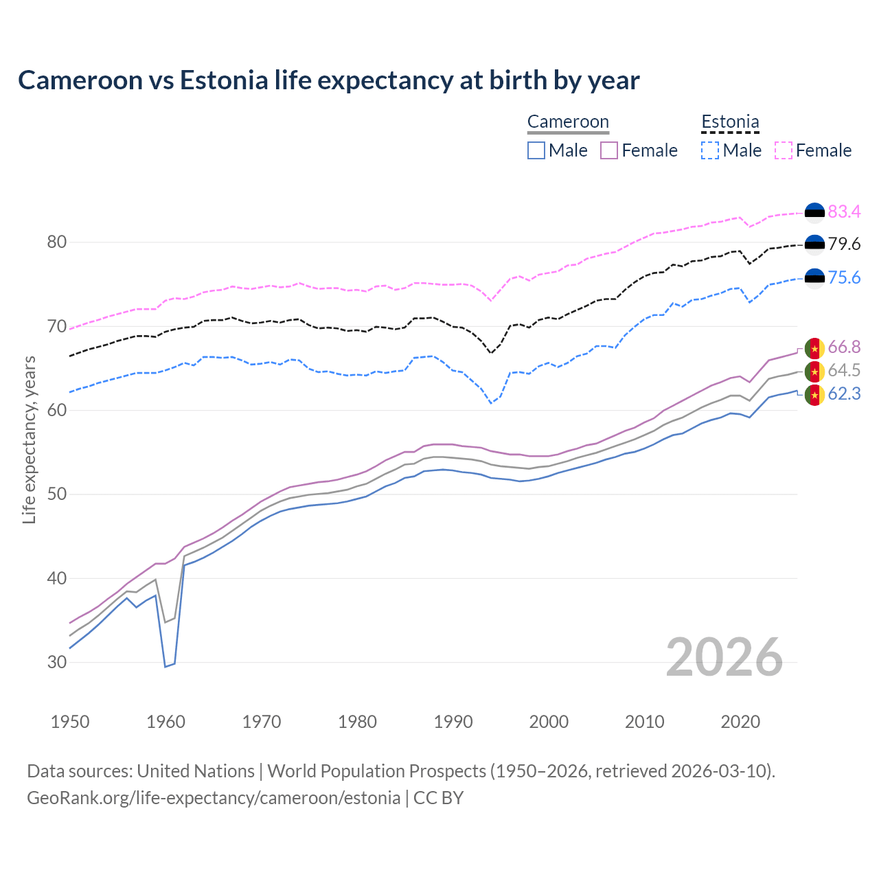 GeoRank.org/life-expectancy/cameroon/estonia | CC BY