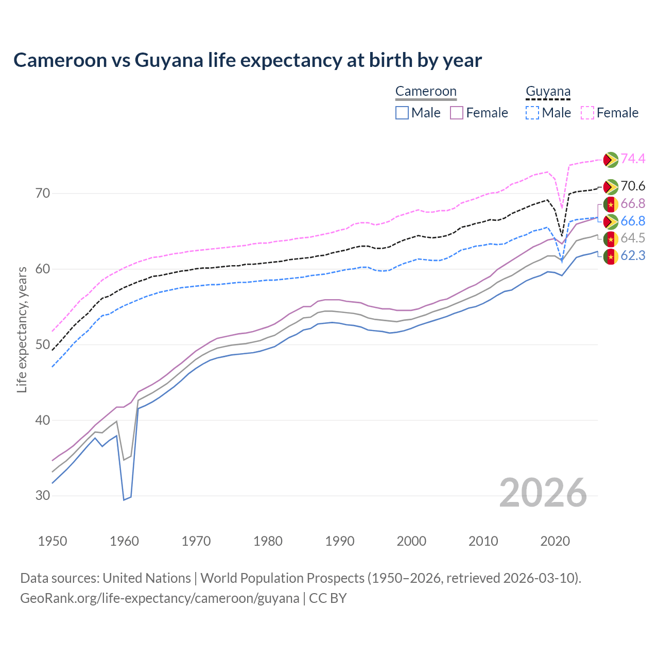 GeoRank.org/life-expectancy/cameroon/guyana | CC BY