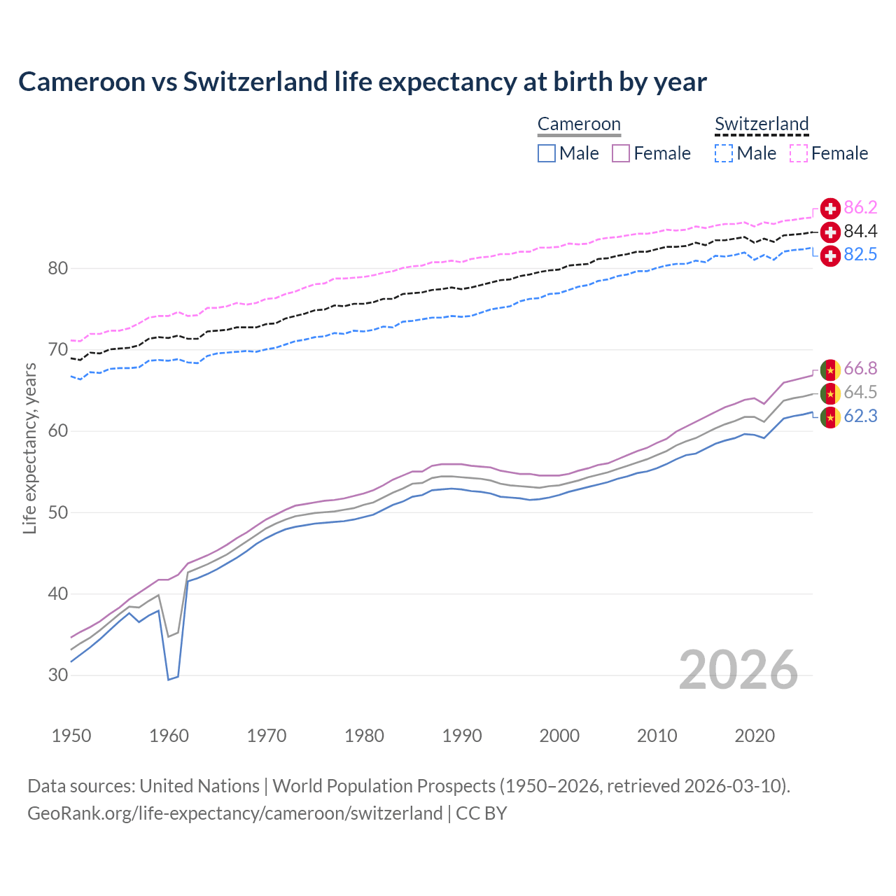 GeoRank.org/life-expectancy/cameroon/switzerland | CC BY