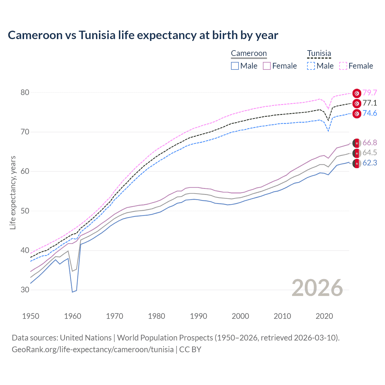 GeoRank.org/life-expectancy/cameroon/tunisia | CC BY