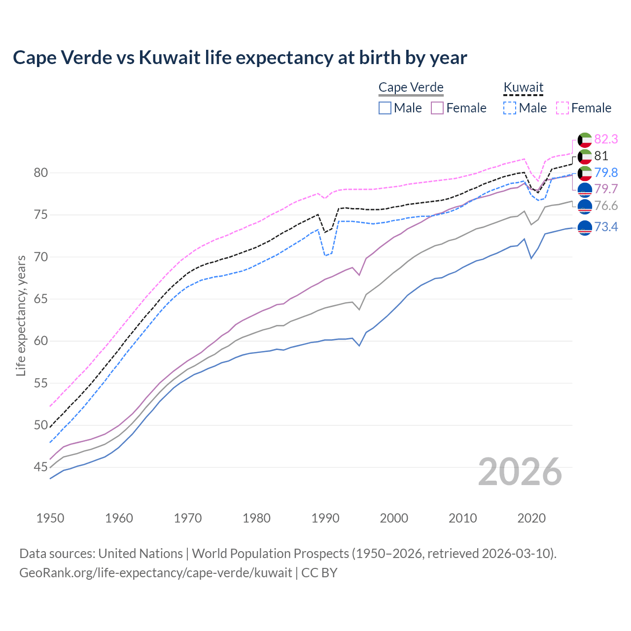 GeoRank.org/life-expectancy/cape-verde/kuwait | CC BY