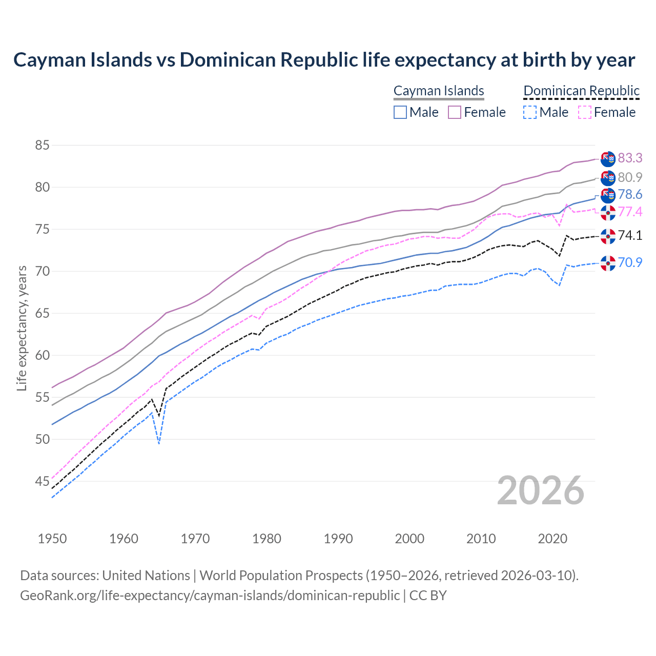 GeoRank.org/life-expectancy/cayman-islands/dominican-republic | CC BY
