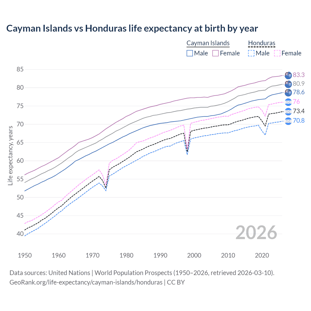 GeoRank.org/life-expectancy/cayman-islands/honduras | CC BY