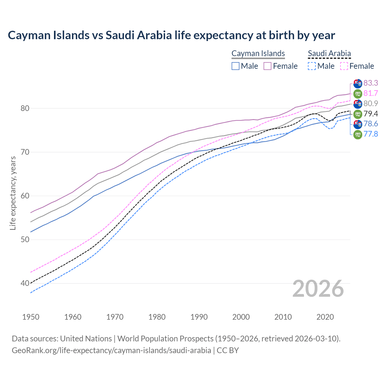 GeoRank.org/life-expectancy/cayman-islands/saudi-arabia | CC BY