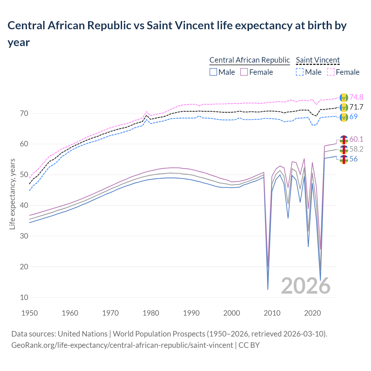 GeoRank.org/life-expectancy/central-african-republic/saint-vincent | CC BY