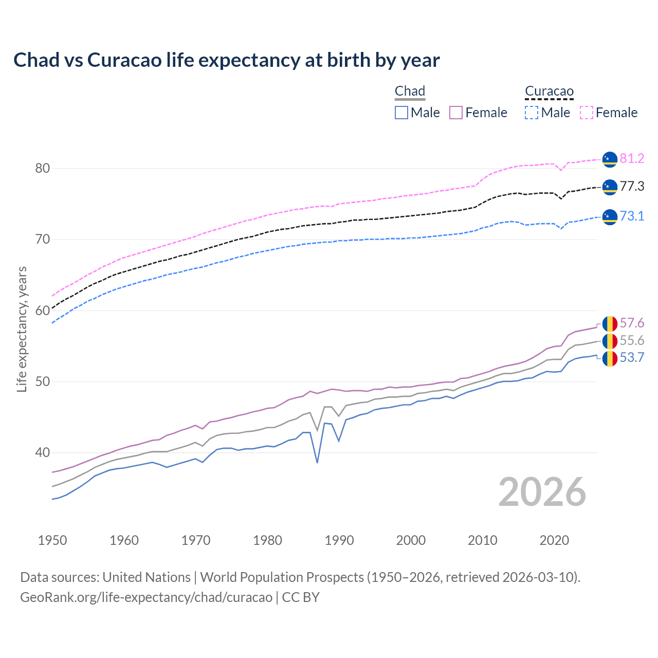 GeoRank.org/life-expectancy/chad/curacao | CC BY