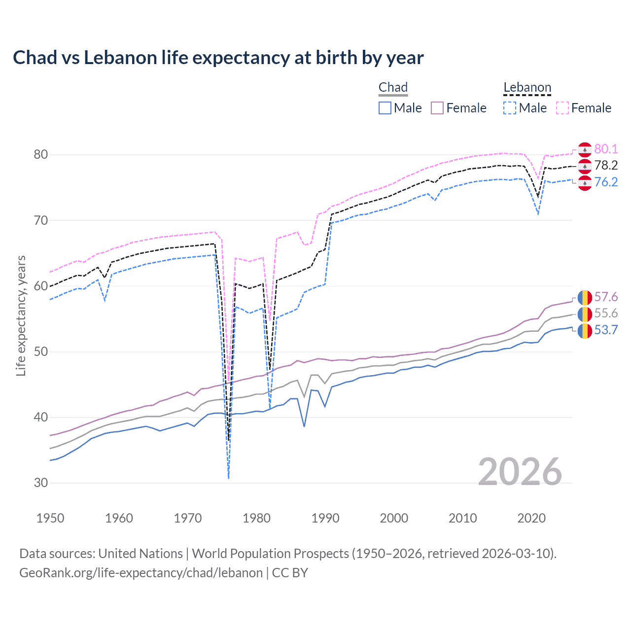 GeoRank.org/life-expectancy/chad/lebanon | CC BY