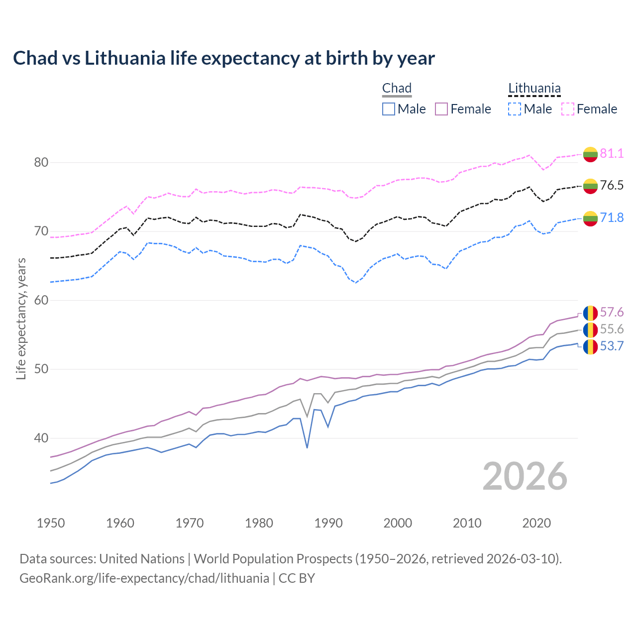 GeoRank.org/life-expectancy/chad/lithuania | CC BY