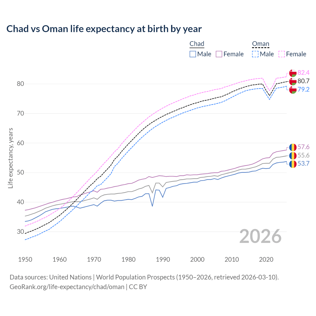 GeoRank.org/life-expectancy/chad/oman | CC BY