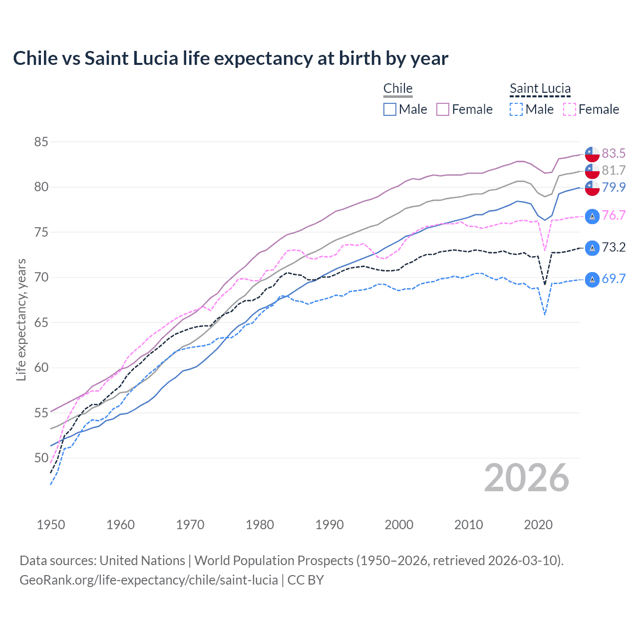 GeoRank.org/life-expectancy/chile/saint-lucia | CC BY