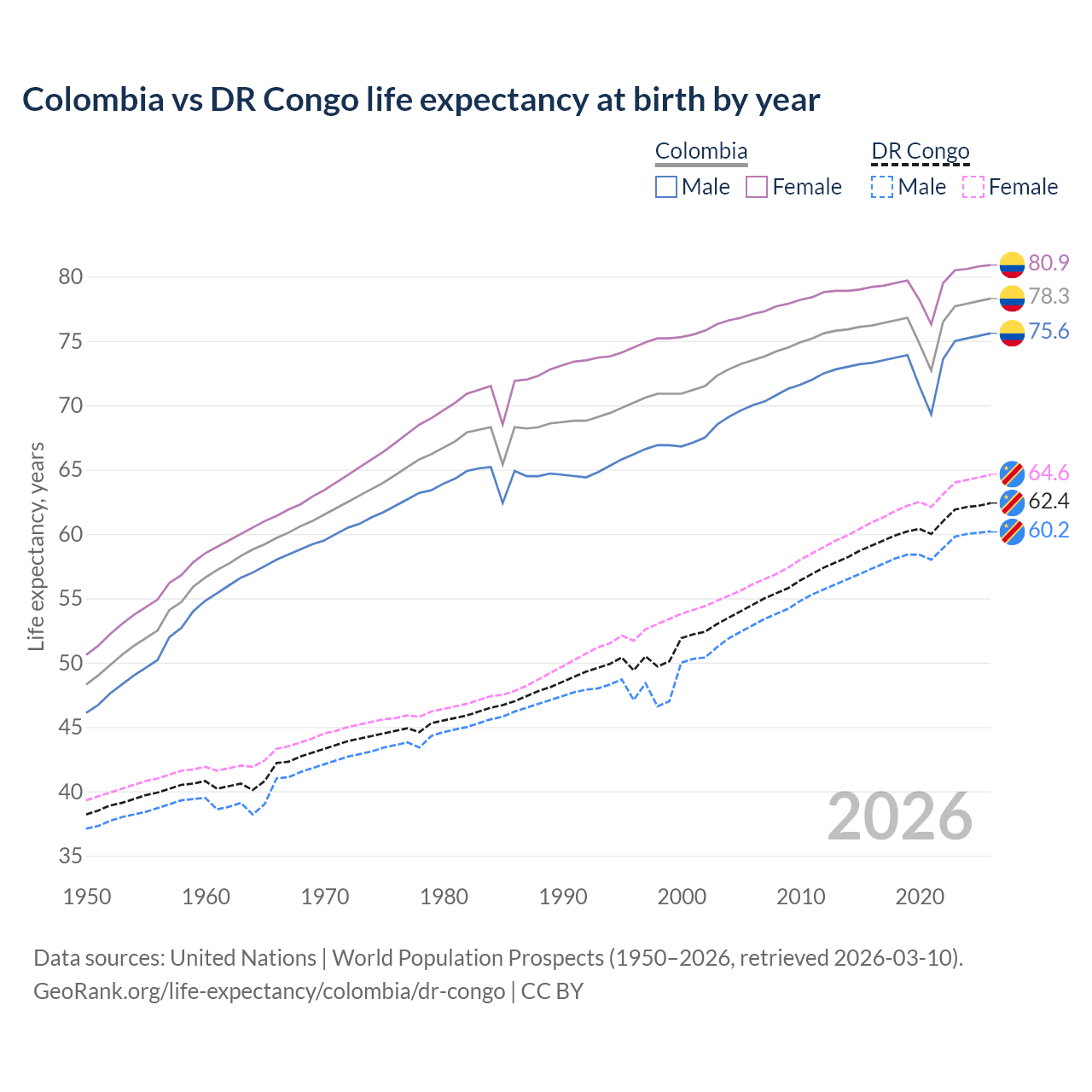 GeoRank.org/life-expectancy/colombia/dr-congo | CC BY