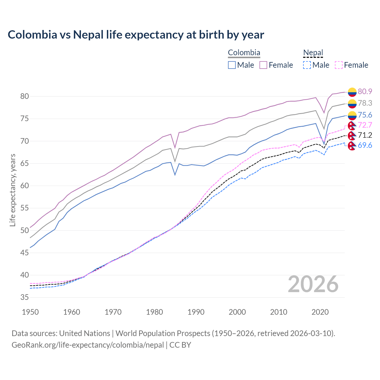 GeoRank.org/life-expectancy/colombia/nepal | CC BY