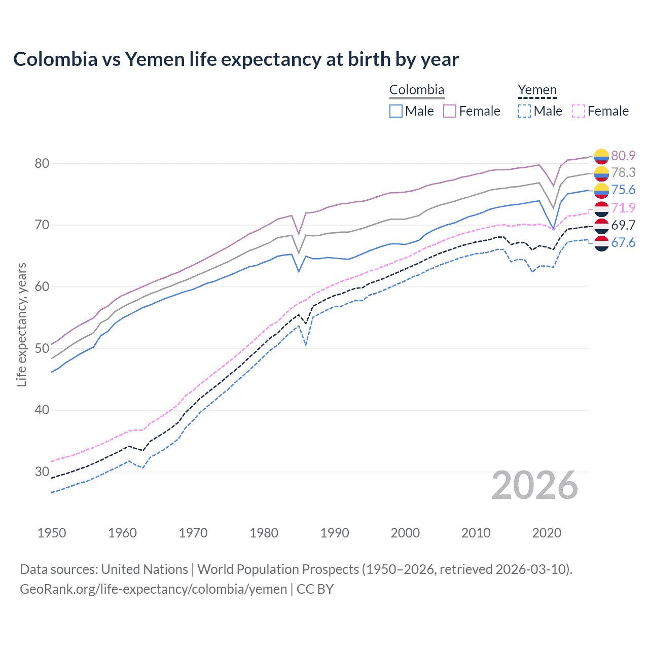 GeoRank.org/life-expectancy/colombia/yemen | CC BY