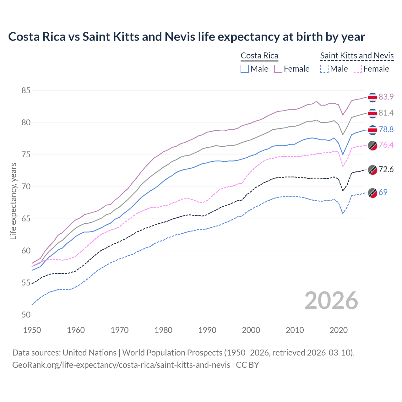 GeoRank.org/life-expectancy/costa-rica/saint-kitts-and-nevis | CC BY