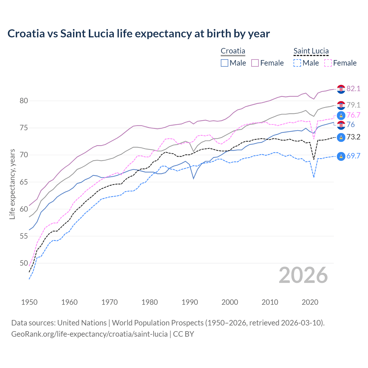 GeoRank.org/life-expectancy/croatia/saint-lucia | CC BY