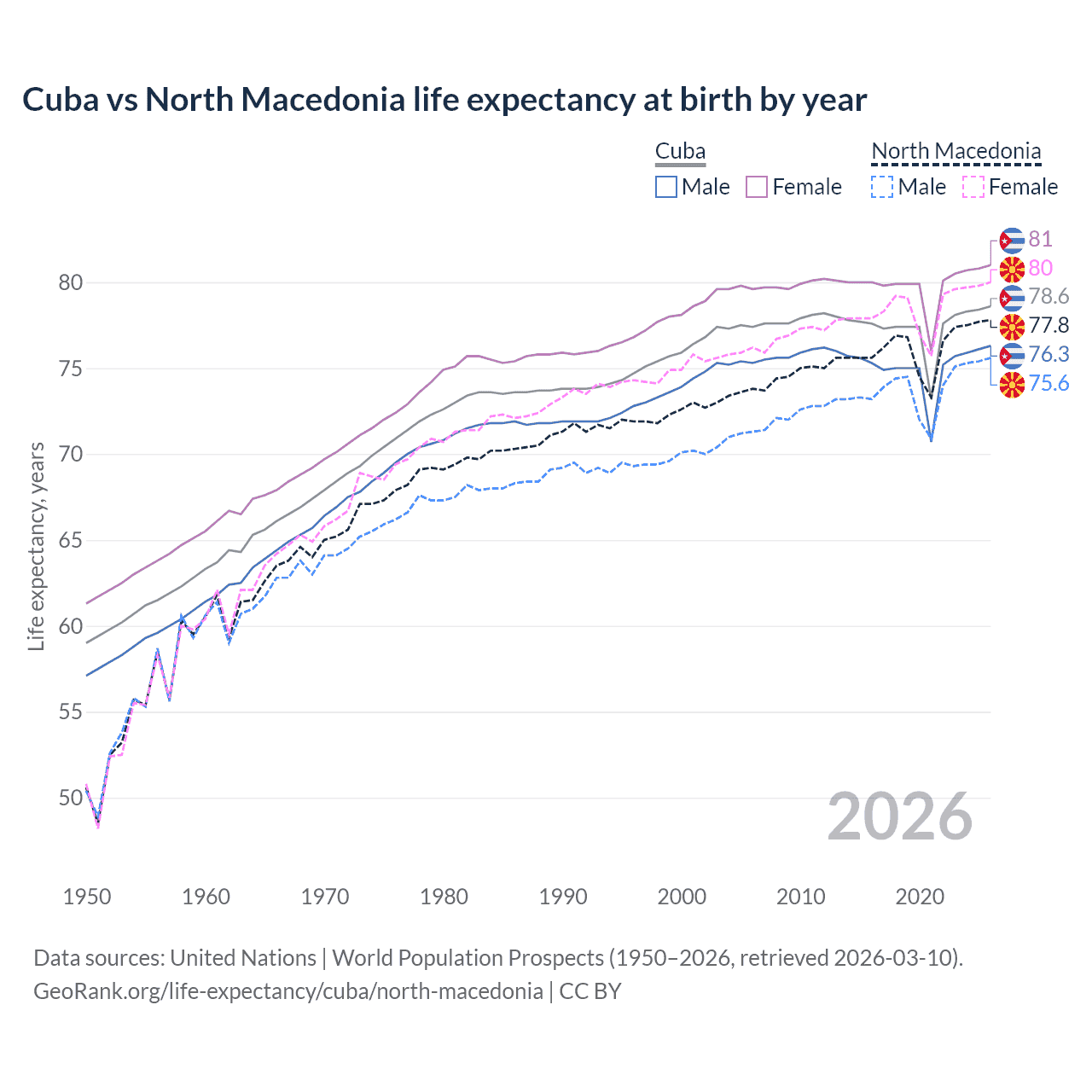 GeoRank.org/life-expectancy/cuba/north-macedonia | CC BY