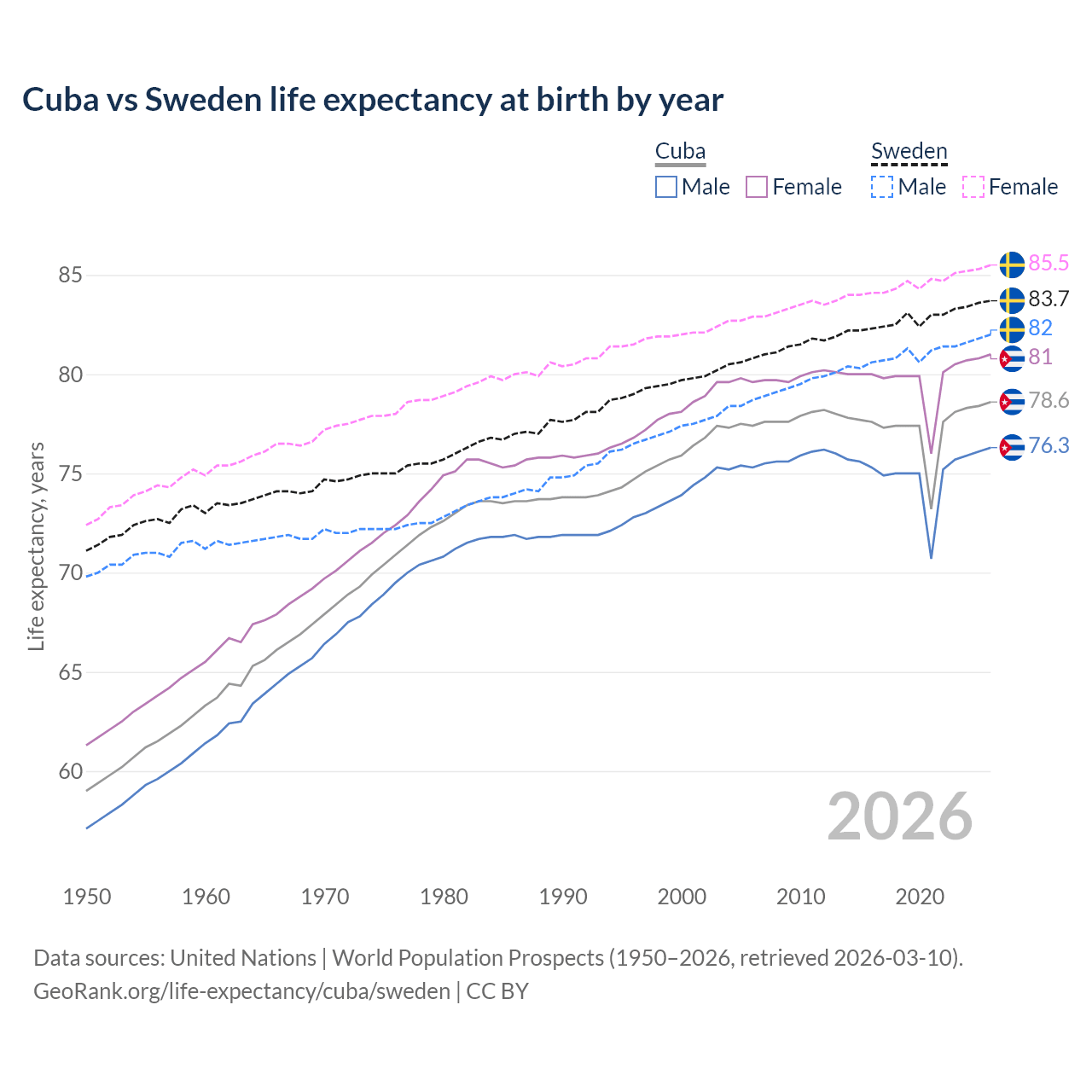 GeoRank.org/life-expectancy/cuba/sweden | CC BY
