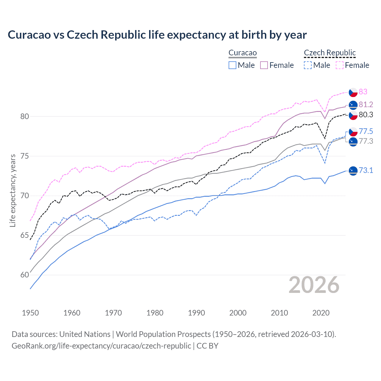 GeoRank.org/life-expectancy/curacao/czech-republic | CC BY