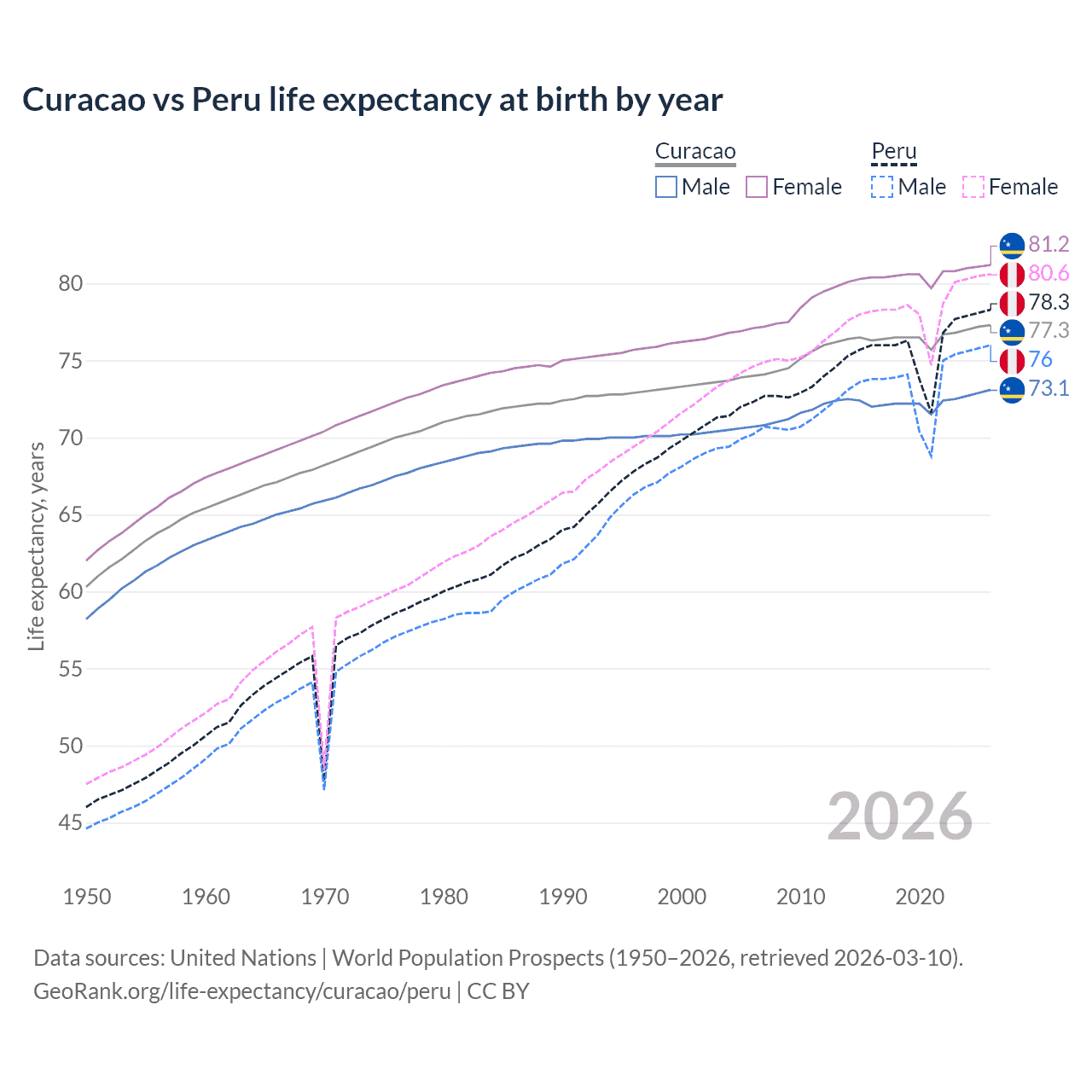 GeoRank.org/life-expectancy/curacao/peru | CC BY