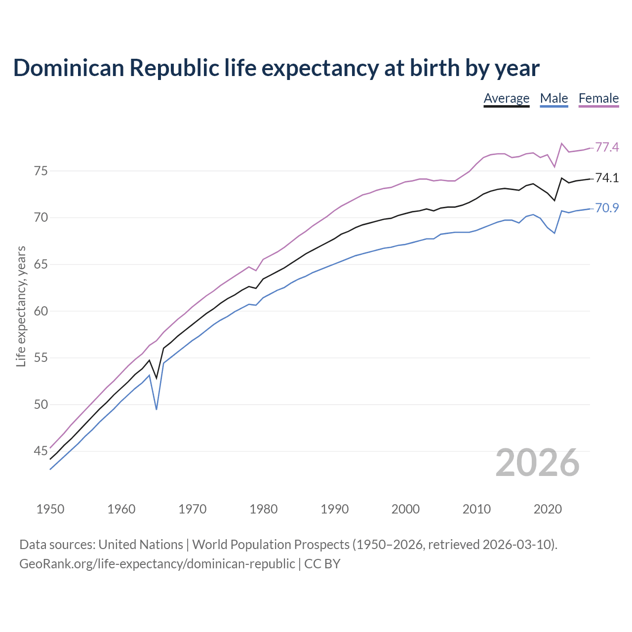 GeoRank.org/life-expectancy/dominican-republic | CC BY