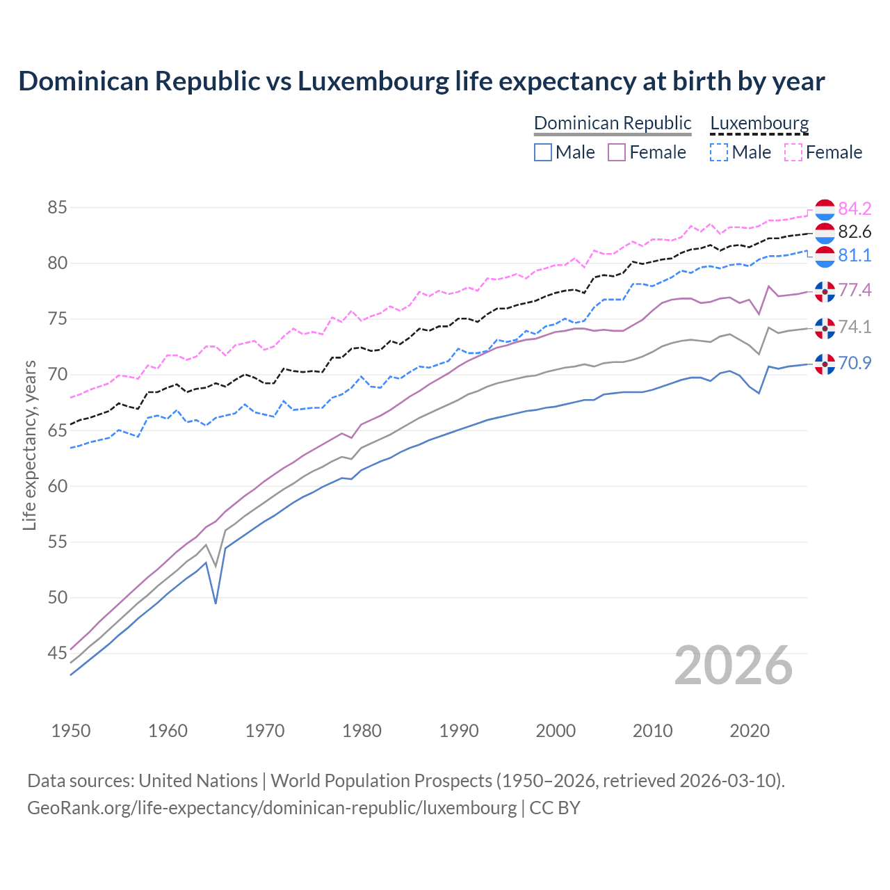 GeoRank.org/life-expectancy/dominican-republic/luxembourg | CC BY