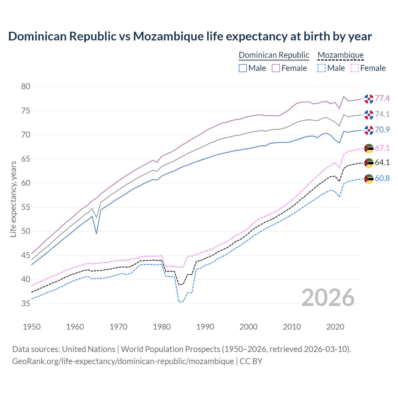GeoRank.org/life-expectancy/dominican-republic/mozambique | CC BY