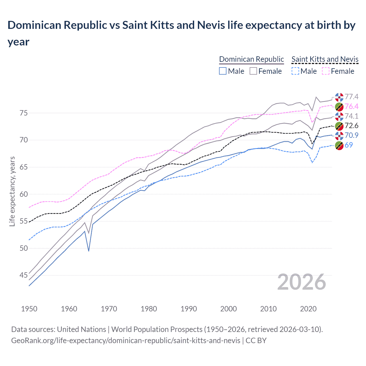 GeoRank.org/life-expectancy/dominican-republic/saint-kitts-and-nevis | CC BY