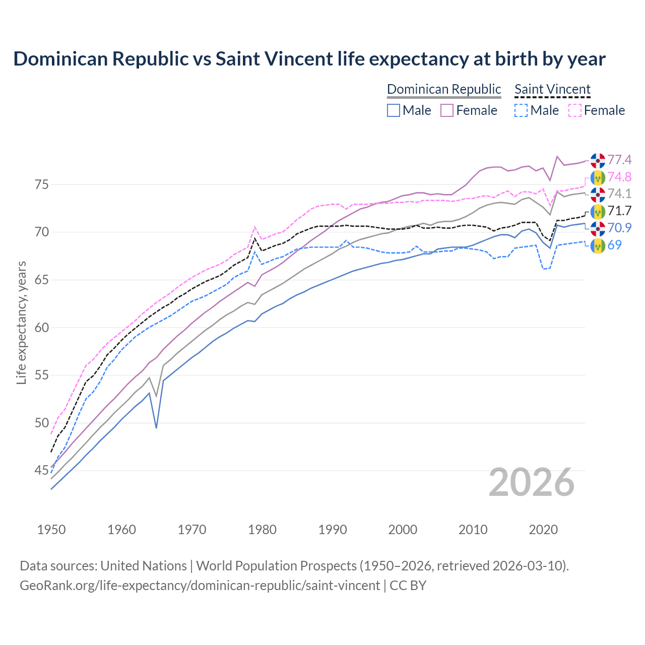 GeoRank.org/life-expectancy/dominican-republic/saint-vincent | CC BY