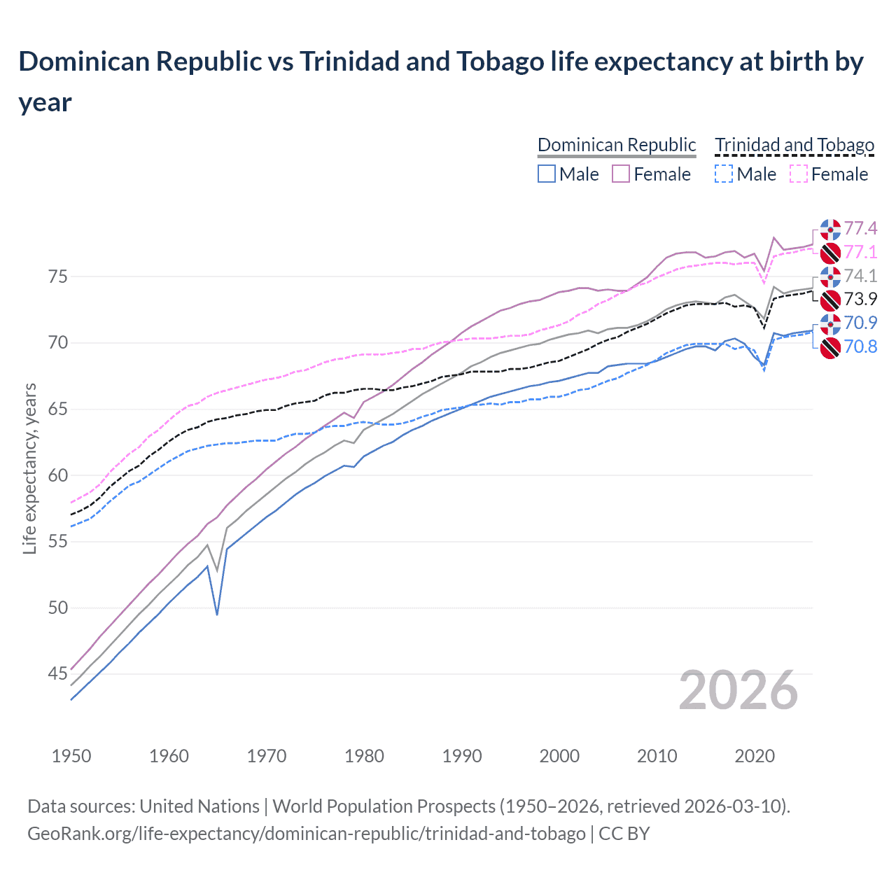 GeoRank.org/life-expectancy/dominican-republic/trinidad-and-tobago | CC BY