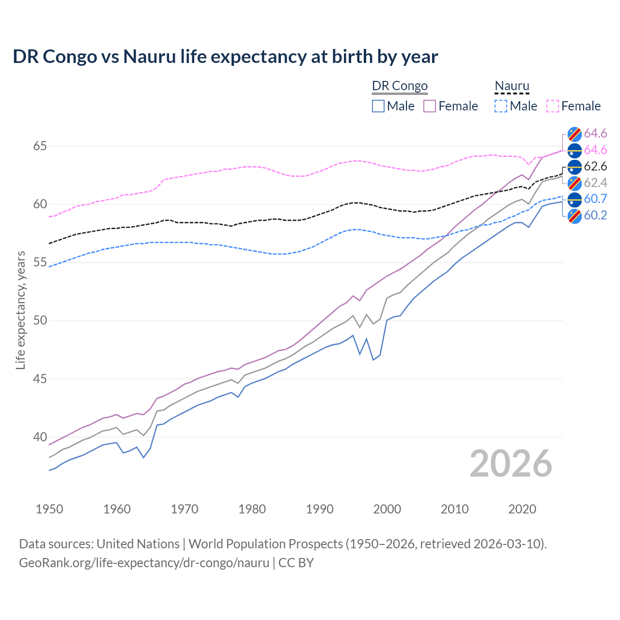 GeoRank.org/life-expectancy/dr-congo/nauru | CC BY