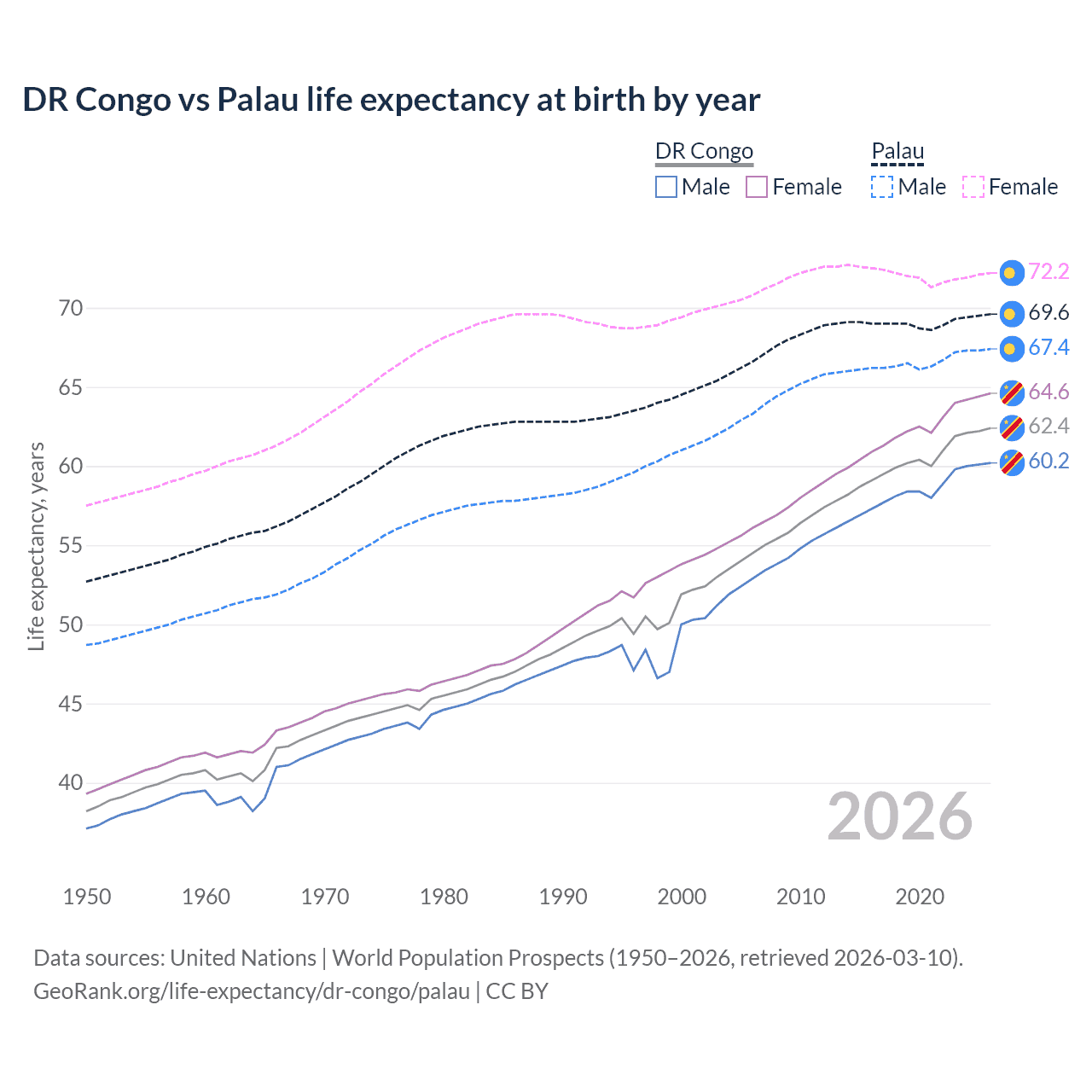 GeoRank.org/life-expectancy/dr-congo/palau | CC BY