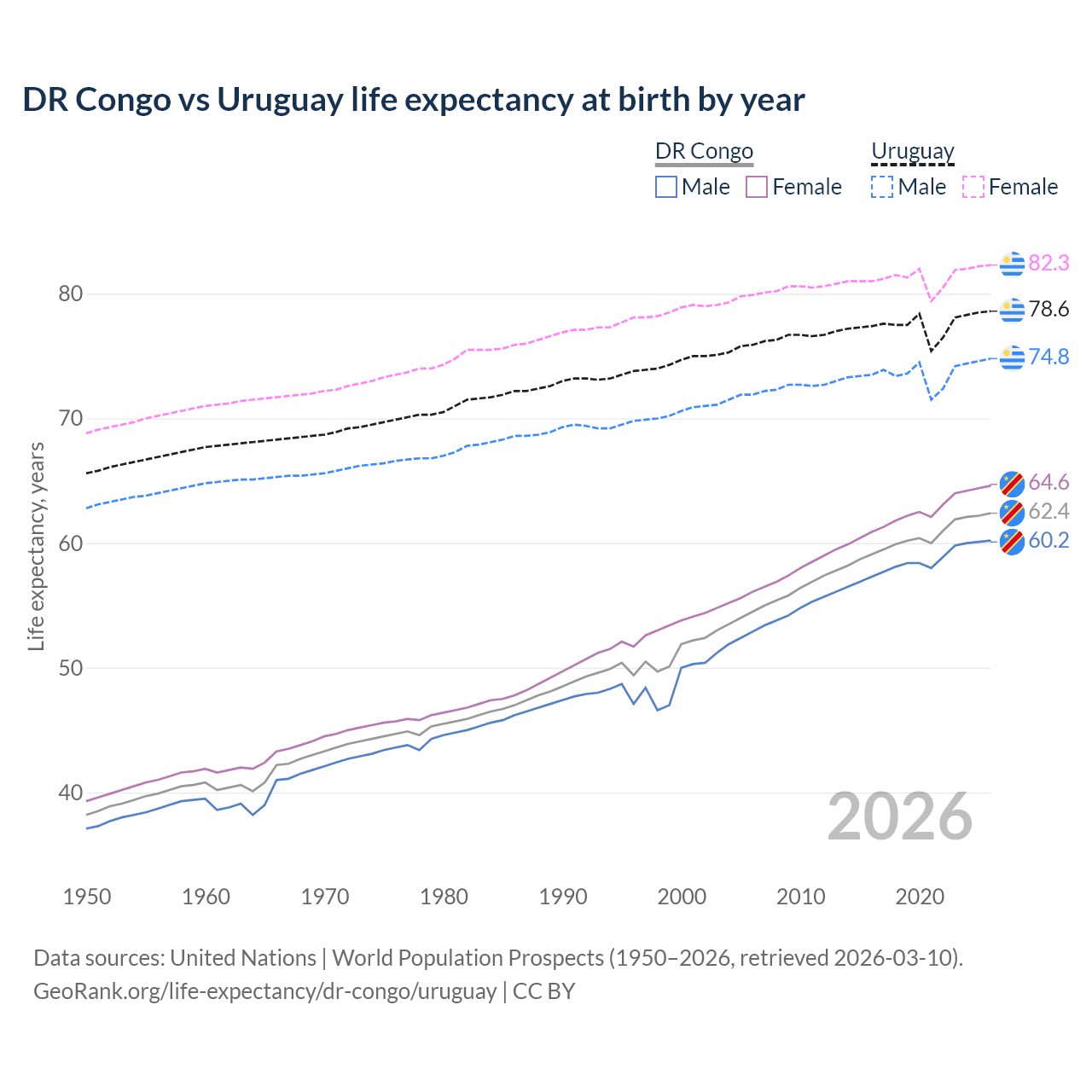 GeoRank.org/life-expectancy/dr-congo/uruguay | CC BY