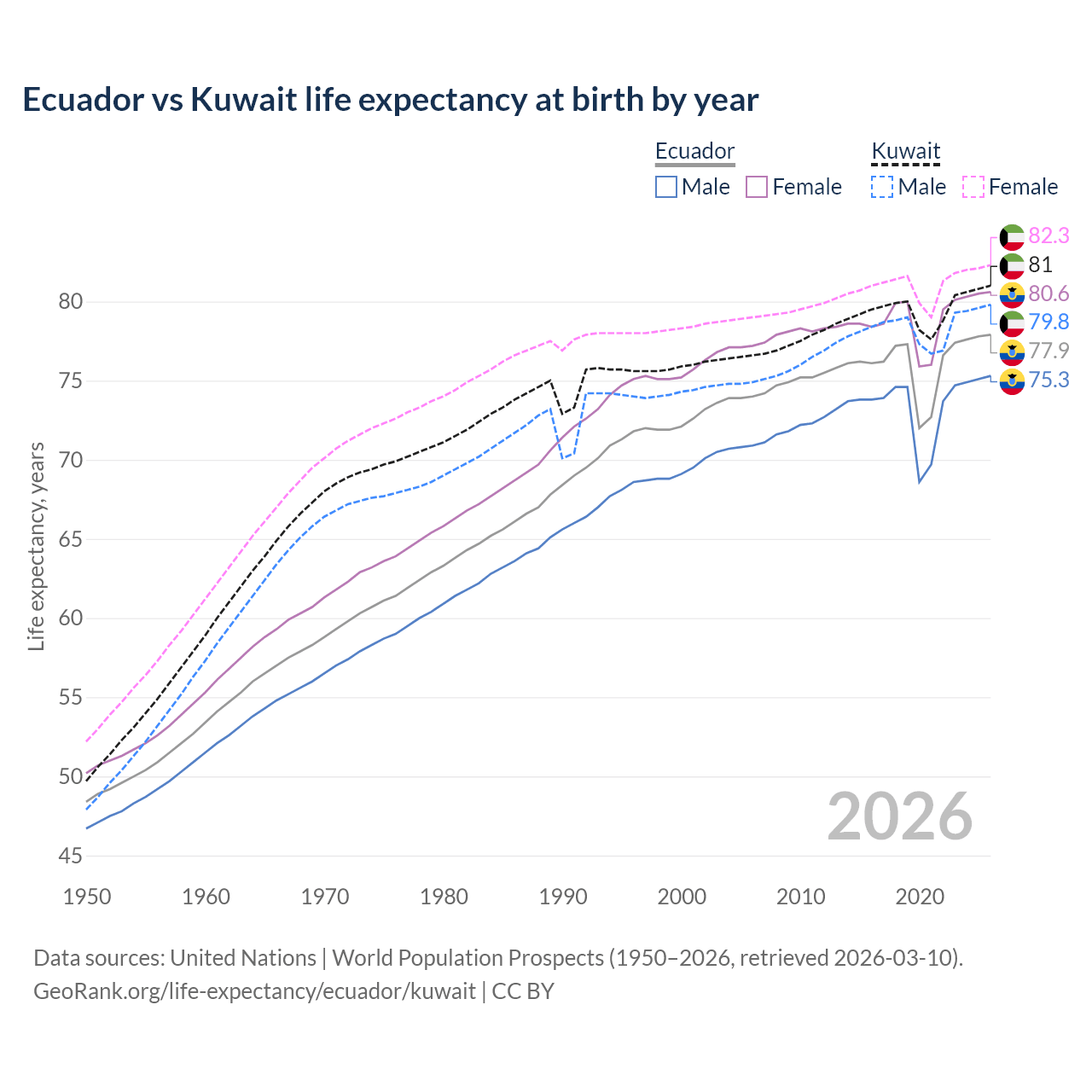 GeoRank.org/life-expectancy/ecuador/kuwait | CC BY